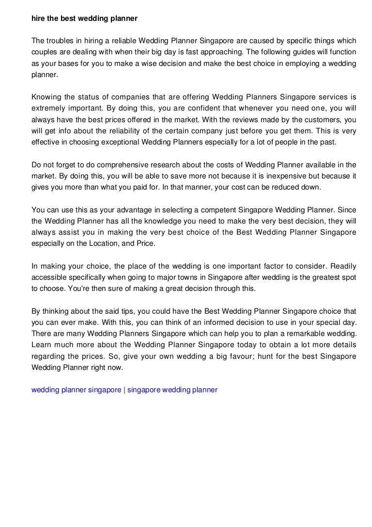 You fail to plan, you plan to fail. With wedding planners in place, you can easily achieve your dream wedding and focus on the big day with your with that said, here are the best wedding planners you should engage in singapore. • look at wedding planners and photographers' portfolios online. There are countless details to worry about but simply not enough hours in a day to do it we've rounded up some our favourite wedding planners in singapore below. Rosette believes that each couple.